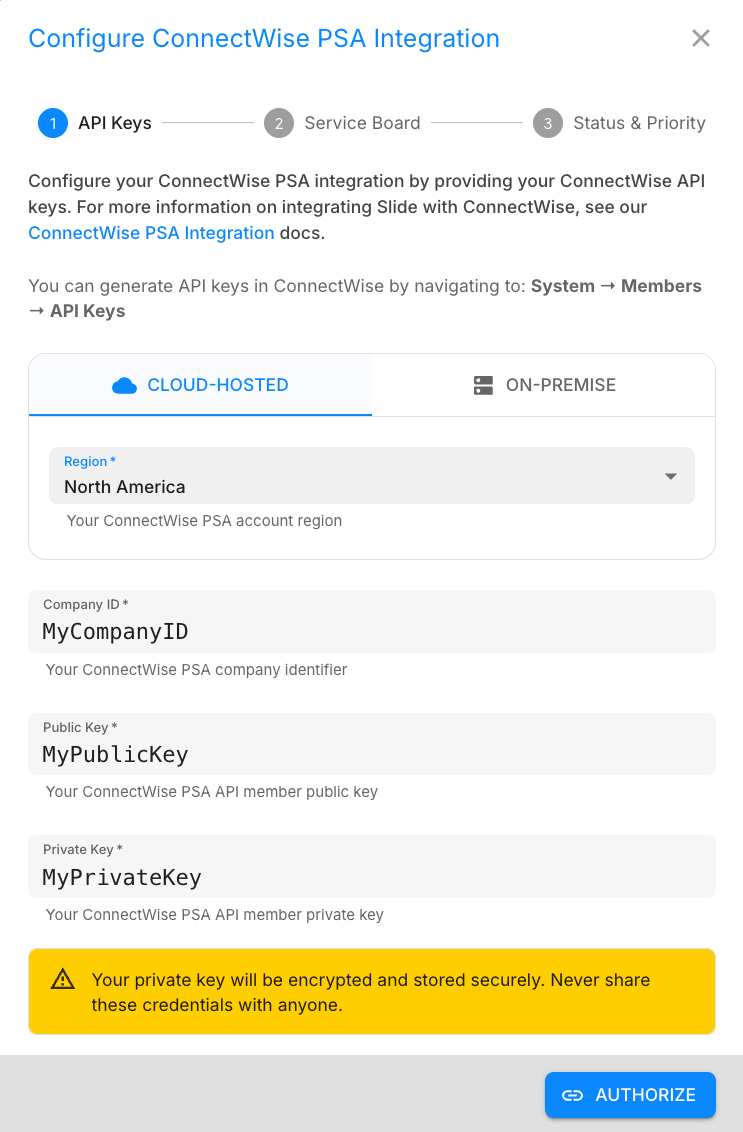 - ConnectWise API Authorization Failed: Integration encountered an authorization issue, verify your API keys.