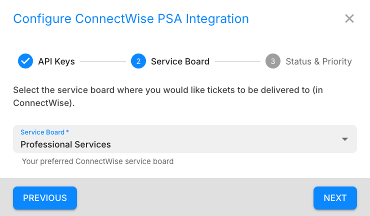 Choosing the ConnectWise service board -