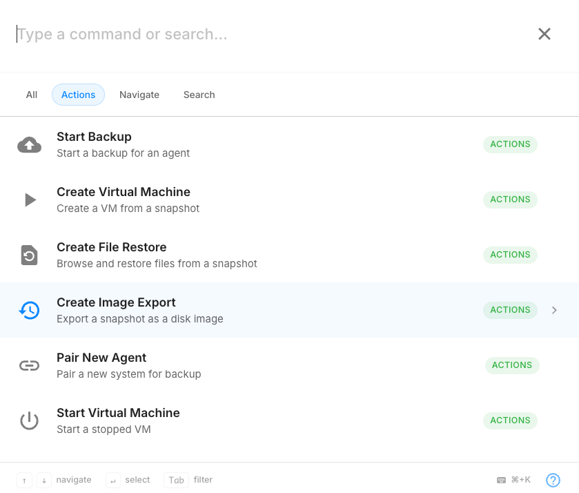 Export snapshots to various disk image formats for use with other virtualization platforms.