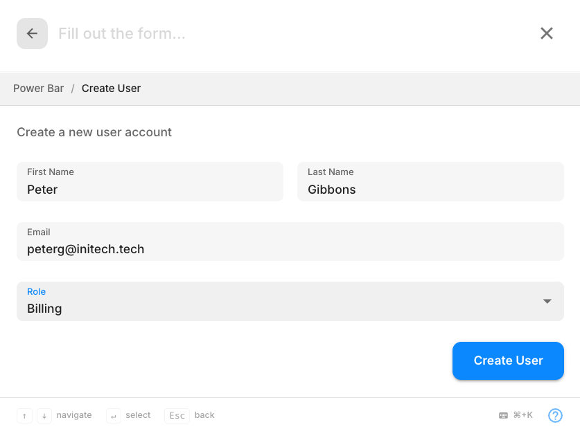 Press Cmd+K (Mac) or Ctrl+K (Windows/Linux) to open the Power Bar. Press Escape or click outside the modal to close it.