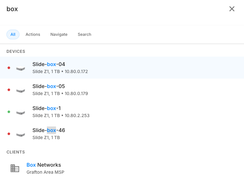 Search results are fuzzy-matched, so partial names and slight misspellings will still find results.